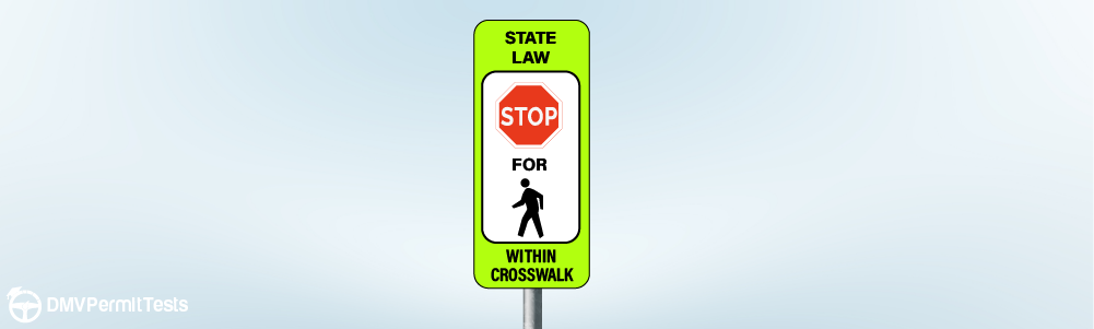 What does a flashing yellow signal at a pedestrian crosswalk indicate to approaching drivers? |